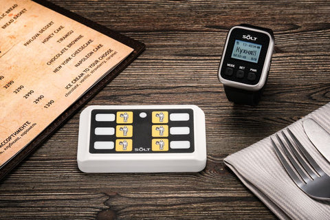 Using the cook's console, you can easily call the right waiter. It will allow your waiters to devote more time to guests, and the dishes will be served when they are still really hot. Each of the six buttons is assigned to a pager of the specific waiter.